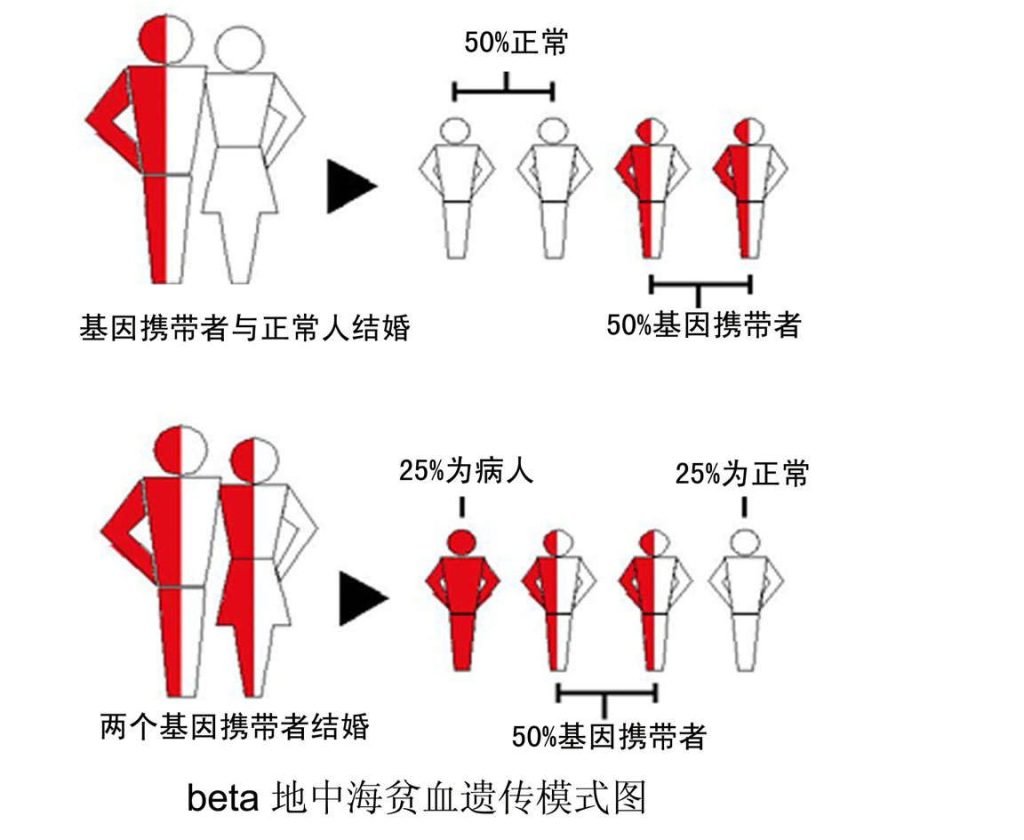 如果夫妻都是同一類型的地中海貧血,那生下來的孩子1/4是重型地貧,1/2是基因攜帶者,1/4是正常的。